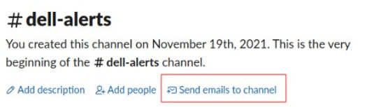 Setting up a slack channel to receive email is extremely easy, open your slack workspace in the app or webui and navigate to the channel you want to receive email alerts for. If you have a paid slack subscription you will see the link similar to the image below. Once you have that email address you can send email to it.